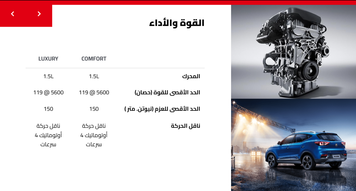 حققت MG 7 رقما قياسيا عالميا في موسوعة جينيس للأداء على ارتفاعات عالية، مما رسخ مكانتها كمركبة قوية للقيادة سريعة الاستجابة ومتعددة الاستخدامات. مزودة بمحرك تربو سعة 1.5 لتر، بناقل حركة مزدوج القابض رطب ب 7 سرعات يولد قوة 185 حصانا و300 نيوتن متر من عزم الدوران، لتتجاوز MG 7 التوقعات باستمرار. بالإضافة إلى الاستمتاع باستجابة قوية مع زر Super Sport ، مما يعزز رحلتك بدفة كبيرة من القوة والتسارع.